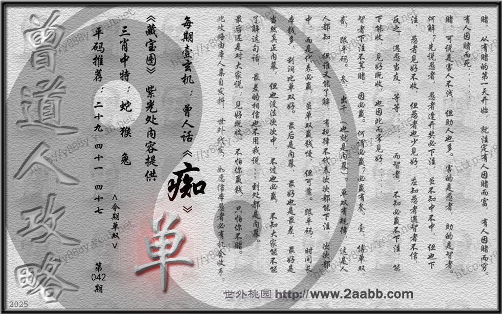 041-042期金光佛特开;鸡猪狗猴鼠羊(天下知晓)